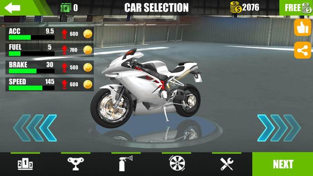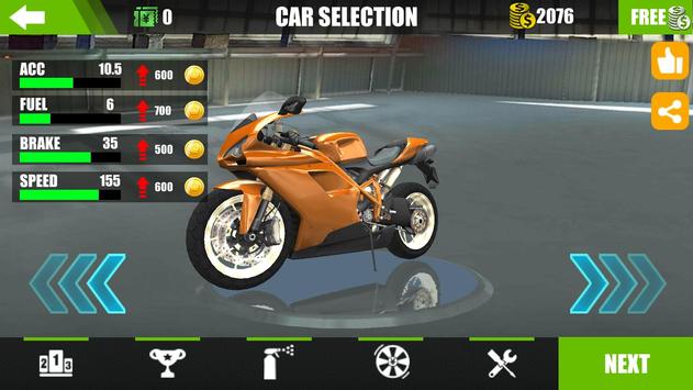 In the game, you will be on the road around the world shuttle. And a variety of vehicles to compete. Complete the game to win the reward to upgrade your motorcycle or buy a new car. The garage in the game provides you with the world's top racing motorbike.