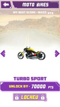 Moto Bike Rider is a fast paced racing game. You never dare drive so fast in the real world! Control your moto with incredible fast speed during traffic rush time! Also enjoy beautiful view during the journey - desert, city, bridge, sea,highway and forest!