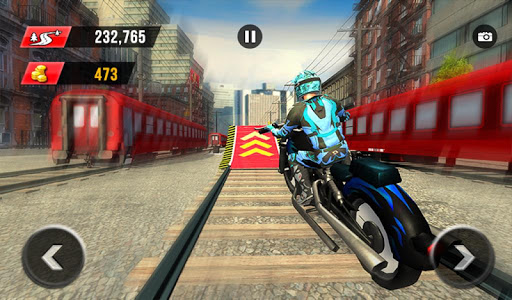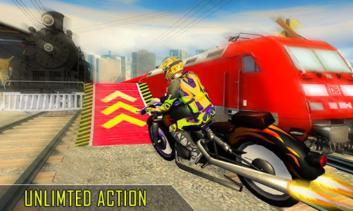 Ride coolest bikes and use the unique boost to blast away other train from the tracks. Also you get to ride motorbike on to the ramps and jump on to the top of the oncoming bullet train railroad as daredevil stuntman motorbike ride. Rush on train track and explore various roads that go through city, railway track and pass between steam engine train cars. Avoid crashing into any hurdle or your game is over. Play amazing subway motorbike rider game rush on the railway road like pro biker.
