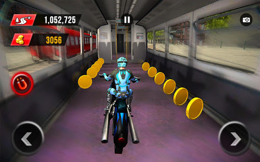 Ride motorbike race on railroad track and real train cars. Swap to change the lanes of the railway track and dodge train rush on subway station. Keep collecting coins to reach the highest score and to be the unlock more coolest bike ride. The motive of the game is very simple, keep dodging the tracks and survive without any crashes.