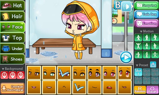 You can create your own Pretty Girl comics by using various emotion display and dialogue,