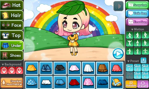 You can change the background, 9 poses and motions, you can also store your Pretty Girl in 6 slots.