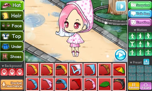 Make your own fresh Pretty Girl with various hair, costumes and accessories.