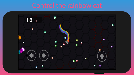 Avoid getting touched by any part of the enemy snakes, otherwise it will lead to the collapsing of your rainbow cats big head and a huge rainbow explosion! So, just slither on through the world of glowing glims minding your own business as you try & be the longest rainbow cat of the day!