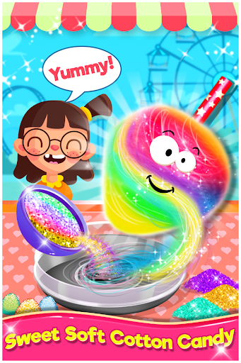 turn on the machine and roll the fluffy rainbow clouds over the stick to enjoy sweet candy later.