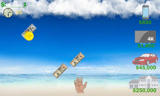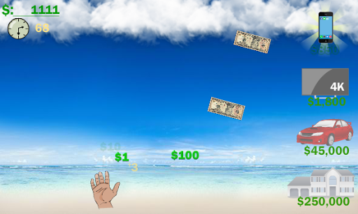 Grab as much money as you can before the time runs out. You will start with 60 seconds, grab the yellow coin and 3 seconds will be added to the timer. But if you miss grabbing any of the falling money, 1 second will be deducted from the timer.