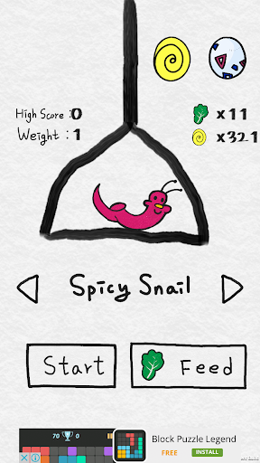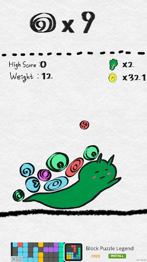 Stack snail shells as many as you can. When you beat your high score, you will get cabbage. feed cabbage and raise snails. you can get more and more snails. No second thought! Just take up a challenge! Good Luck!