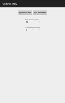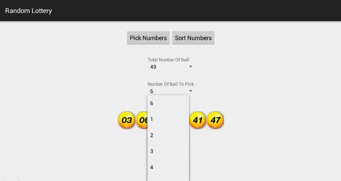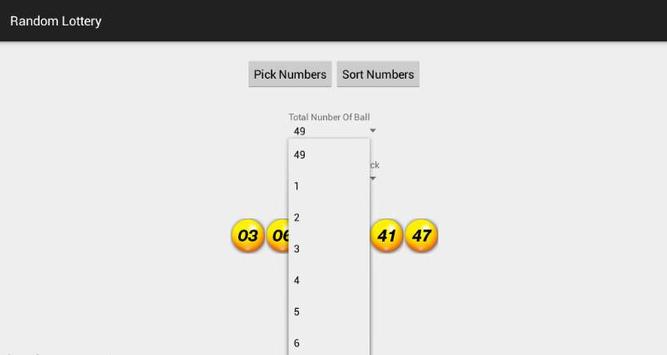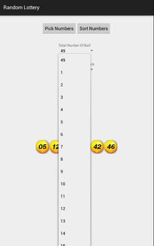 Free lottery random number generator. Allows you to quick pick lottery numbers. And you also can play lottery game by yourself - Support Choose total numbers - Support Choose what numbers to pick - cool animation