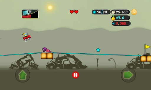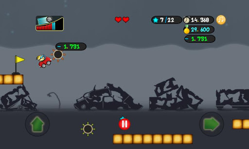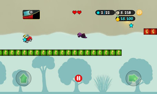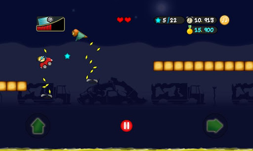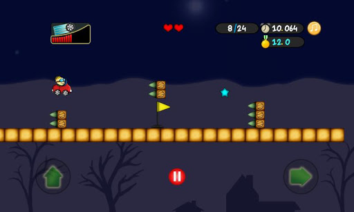 Guide the kid in his red car across 25 levels in this fast paced 2d platformer. Collect stars along the way. Have fun with some rising/dropping platforms , some broken platforms, some inclined platforms and some portals with changing day night weather effect. Avoid enemies like flying bats, lazy owls, jumping porcupines, stationary and rotating spikes, slow snails , even slower zombies, evil oysters and occasional lasers. Each level has time splits and a best time to beat. Have fun in this addictive, hard as nails, side scroller