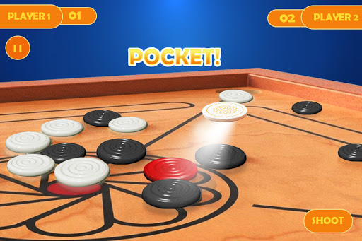 If you don’t know anything about carom game, it’s a pocket and strike similar to snooker, 8 pools, shuffleboard, Indian poker, parches, table board and billiards. Carrom also well known in south east Asia as carom ludo or karrom-bol (coin star). Use your finger to shoot the black and white pieces. You have to pocket the red coin (Queen) before another caramman do it if not then it will be in the center again.