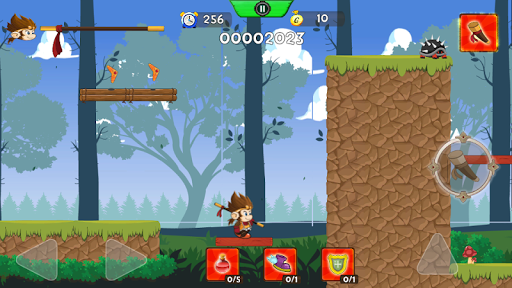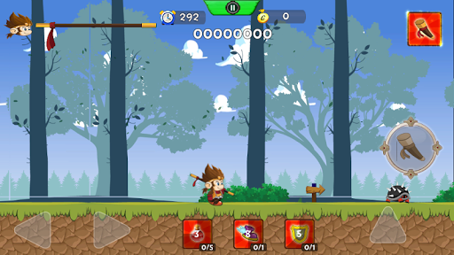 Change Weapon: This button will allow you to change and choose between the different weapons. The different weapons available in this real fighter adventure games are the stone, the bumerang, the stick, and the bomb. The weapons except the stick are present in a limited amount only.