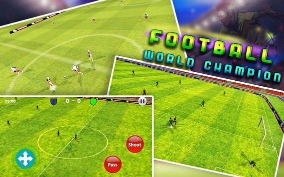 Playing football has never been more exciting and challenging than in the new Football World Champion. Be the football champion! Pass, shoot & score your way to legendary status in challenging levels. Select and manage your team and compete head to head with opponent team. Install this free soccer simulation and choose your dream team and lead them to become champions of the world!