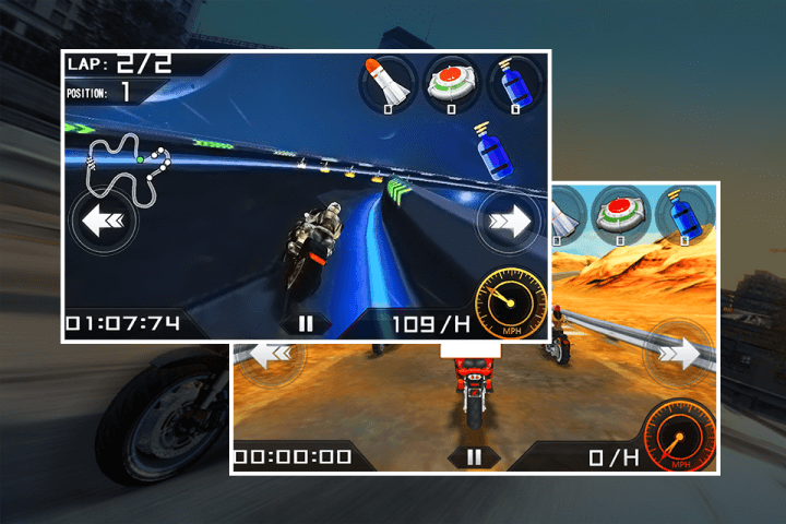 Real Racing Speed Moto 3D will bring to gamer over 8 dangerous land and it is not for an amateur racer including Windmills, Dead City, passing over Dead Bridge, Tunnel Pitfalls, face to face with Stone Mountains, Avalanches, or dying into Wind Desert