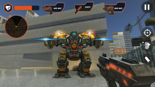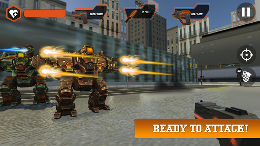 In robot battle game, game play is simple but tough. This game brings out your survival and defensive instincts with multi-reflexes and combat skills. It is now time to put forth your fighting skills and shooting skills because this game play is so intense that it’ll blow your mind. Back to the game play, the enemy killer robots will find and locate your destination and attacks you. These death machines are seriously dangerous and are ready to kill you. So show no mercy and unleash hell on the battlefield and destroy all of the war robots and protect the city.