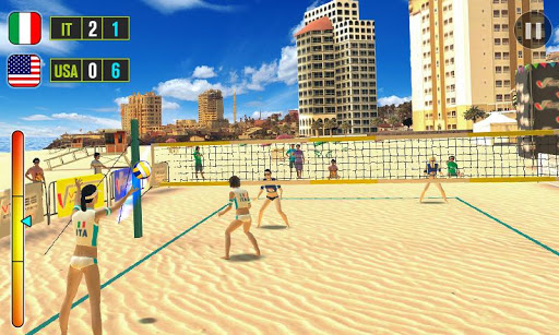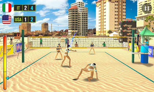 Compete at indoor or Beach Volleyball Arena, rules of the game are the same as 2 player Beach Volleyball.