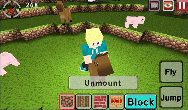 Build, delete, move, fly, jump and mine, craft in free sandbox game.