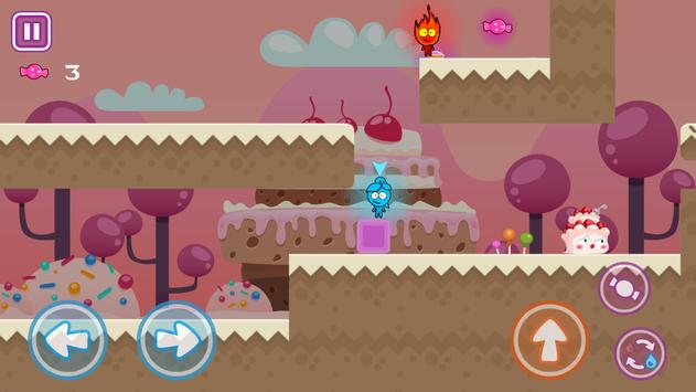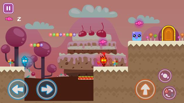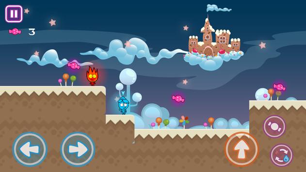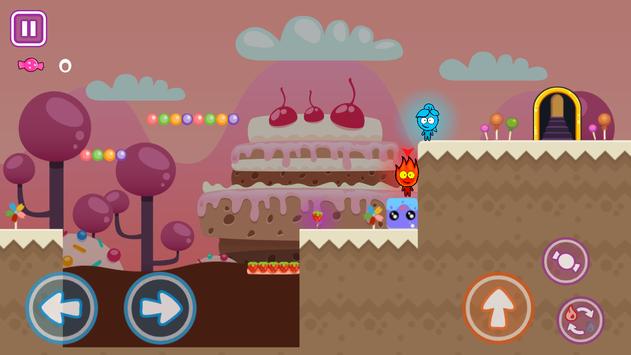 Red boy (Fire boy) and his lover (blue girl - Water girl) was eager to find the candy hut(the candy can dash fly or on ice cream or in chocolate), where they were sure to live a happy life.