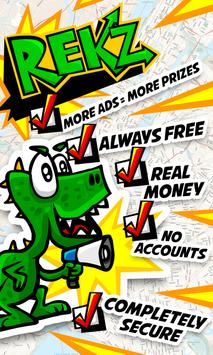 Rekz is a new simple free online lottery game for the whole family where you can find and win money on Google Maps. You need just to zoom in until the Rekz icon becomes green to find Rekz or his eggs. Tap on it, share your victory and get your money!