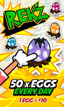 You can zoom in the map until the Rekz icon becomes green, and find Rekz or his eggs, tap on it, share your victory and win your money!