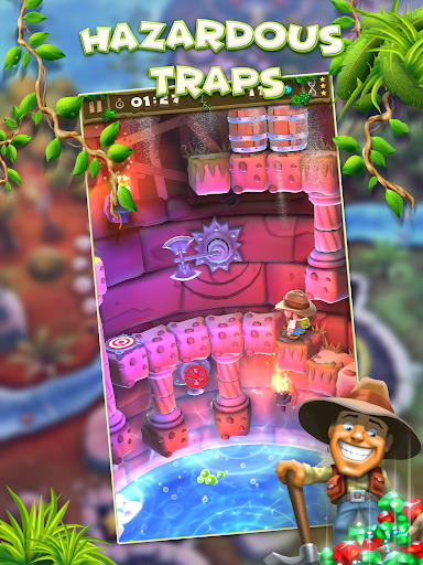 Avoid hazardous threats and discover lots of fabulous mythical relics while moving into unexplored territories! Always be focused and aware of your surroundings as swinging axes, spike traps, acid drops, huge spiders and giant bats can be unforgivingly hostile. But fear not as skillful determination will help you through the harshest circumstances!