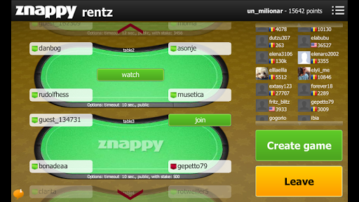 Easy to access, fast and free: the player logs in with username and password or login with Facebook account. Entered in lobby, the player may choose to create a new table or may join the existing ones.