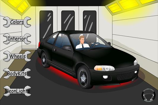 Fix an old auto to get to the customize part of the game where you will be able to change tires, colors,neon lights and body kits. Then take the car for a test drive on the street.