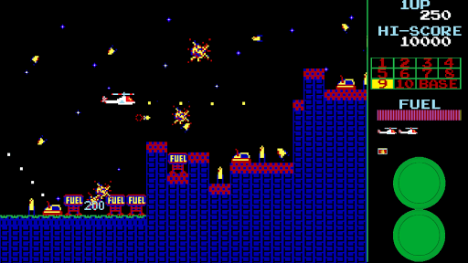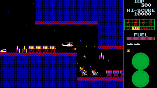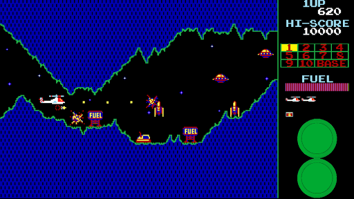 In this side-scrolling shooter arcade game, you navigate your helicopter through 11 stages, fighting rockets, tanks, UFOs and even a chasing meteor! One of the best 80s arcade games.