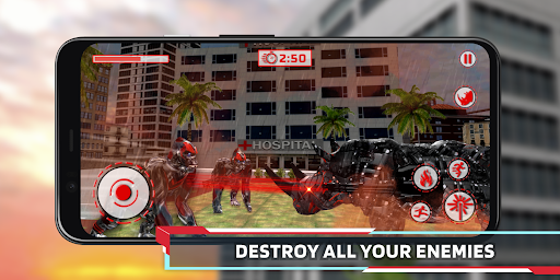 Your main goal is to destroy other robots that will harm civilians! Your opponents are very strong, so you will have to try to destroy each of them. Shoot them with laser or fire! Be confident in your victory and do not be afraid of any obstacles! Smart machines are capable of destroying everything in their path. Transform into a robot rhino and strike back! Start a real war of transformers and win it!