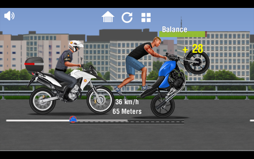 In this game inspired by famous motorcycles like CG Titan e Fan, XTZ 125, XT660R, XJ6, Bros 160, Pop110i, HD 883, it's possible to escape the police and make stunts with the motorcycle.