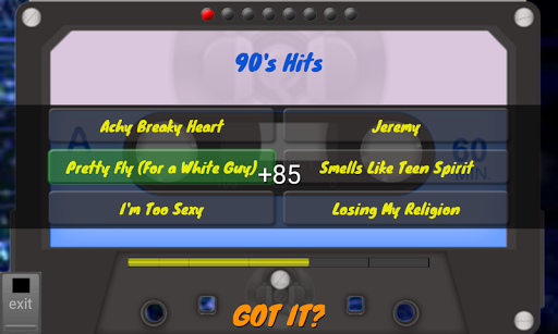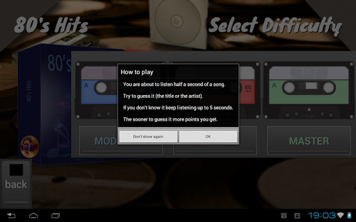 Try to guess the song by listening a little cut, starting from half a second up to 5 seconds. The faster the better to get more points and beat your opponents.