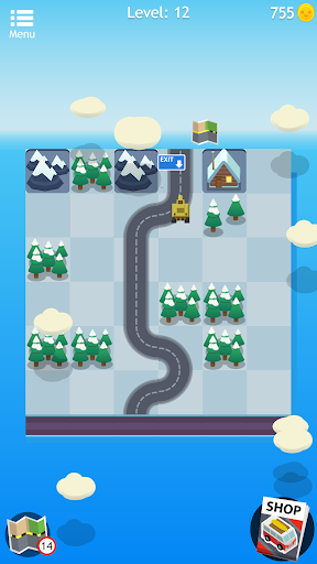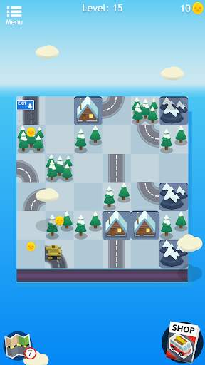 During your travel through this world of puzzles, be sure to pick up the little roadmaps you find along the way because you can use them as a hint! They'll help you move forward with confidence by fitting a part of the highway on the right spot. And don’t worry if you run out of hints, you can get more! There are also bonus gold coins for the taking if you make all the right moves, use them to get some hints packs for those hard levels or you can spend them on new amazing cars like mini-vans, muscle cars or even a tank! Complete a level and train your brain with style!