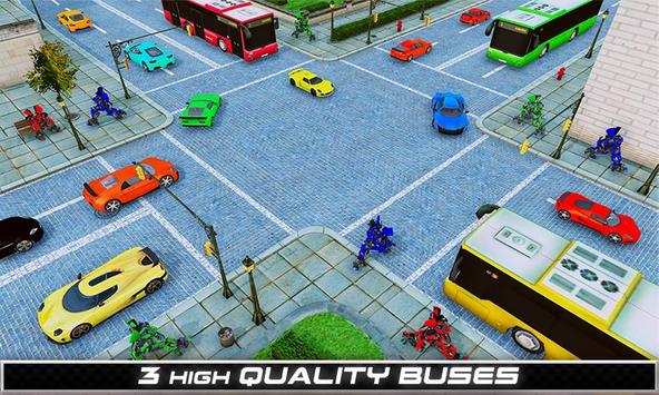Playing the latest passenger robot bus simulator will blend you in a world of 3D entertainment with our HD yet ultra-realistic graphics. Drive your own new robot bus or team up with your friends in a race to gain the most of passengers, the choice is yours. Select from a variety of buses in this robot bus simulator and park in the hardest of places possible. As you advance through the parking game levels, Parking spots will become harder to park at, testing your individual parking skills.