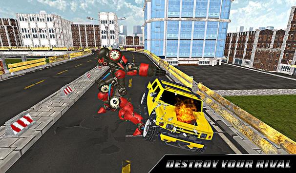For every beginning there's an end. Every shiny new car on the road will one day end up in a junkyard. This Robot Car Crusher 2k17 game is all about to crush cars, kick metal robots and trample weak humans as they run for their lives. But watch out, the evil transform cars is prepared to fight back. These transform cars captures the peaceful city and trying to spread the chaos in the city. Hit the transform robot cars with your robot like bumper cars collision and explode all the evil cars in the air.