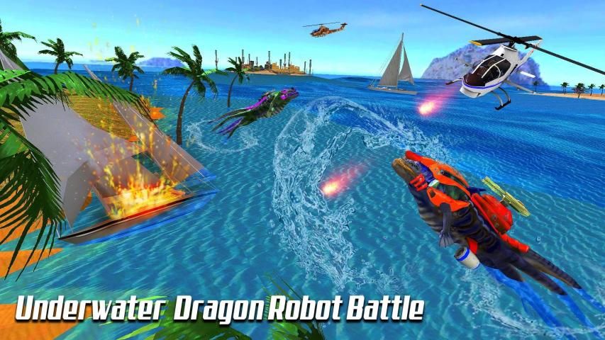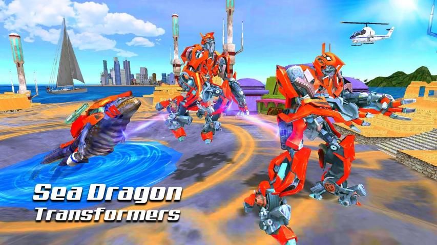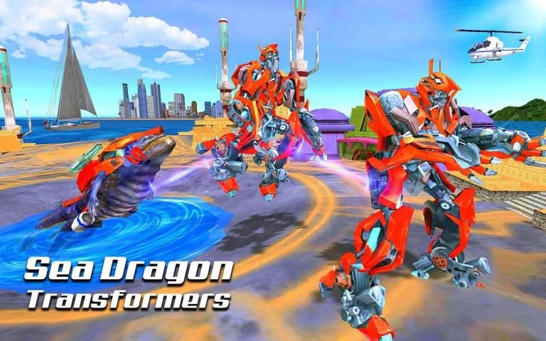 Robot Dragon Attack: Transform Robot Sea Dragon Game Features: