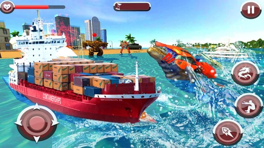 In super hero multi robot dragon war games, you will be able to control a futuristic transformation robot and create havoc in the gigantic city in your city wars saga. Start the furious shooting quest as a swimming robot dolphin and mech robot in one of the very best robot games available on google play store. you are required to handle and control a battle machine build for future robot war, to battle in the air and space against the evil robot forces for protecting your land. We have merged the complex tactics those involved in transforming robot games with thrill of air robot games & flying robot games.You can play either in the gigantic city or evening in the devastating blue ocean. In the new city battles and sea wars, you have to fight to the finish and destroy the enemy robots using your craft and skill. Transform into a high speed submarine, driving and chase the enemy submarine by best shooting missiles game.