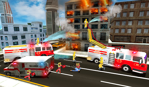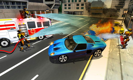 City fire fighting department receives emergency call for rescue missions. Play as robot & your duty is to reach on time, rescue the people with safety first before extinguish the fire. Once you reach to the destination, use the required equipment wisely. The fire adventure is part of your job, so always be ready. Robot firefighter rescue truck pro: real city hero includes brigade truck driving, parking, and action based game play. Rescue in city roads with your team in a quick response. Evade traffic and keep pedestrians safe. Use your parking skills to avoid clashing with city vehicles. Next, embark on several rescue missions in different locations. There will be shopping malls, banks, schools, office buildings, and even hospitals to rescue. Drive fast to car accident spot in multi-story parking plaza, park your robotic fireman rescue truck and use fire hose to put out blaze. Take position as robot firefighter hero city savior and ride 911 rescue truck simulator 3d. You have to be a skilled driver to reach at effected side and get rid of a people in a limited time. So keep your professional skills into a show of fireman and proved yourself as a skilled driver by driving a 4x4 real robot rescue truck.