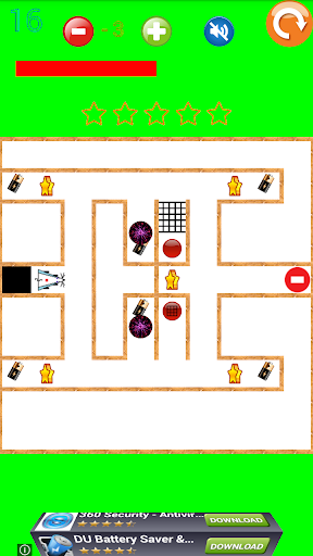 Mouse moving consume energy, the energy level can be seen on the scale above the labyrinth. Energy can restored by collecting batteries. If the energy ends, the mouse stops and maze start over.