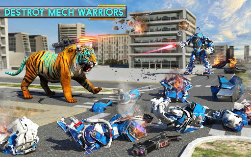 Get ready for Futuristic Tiger Robot Transforming into US police car and Fight for Survival of modern city against evil war robots. Experience real Robot Transforming Wild Tiger vs lion attack where futuristic war robots destroy the city.