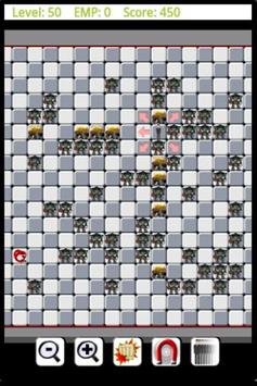 A fun and addictive turn based strategy game where you must try and outwit the robots who are programmed for only one thing, to kill and destroy. Using the available tools, weapons and bonus power ups, manoeuvre yourself through the endless number of levels destroying every robot in your path. Escape the robots, or die!
