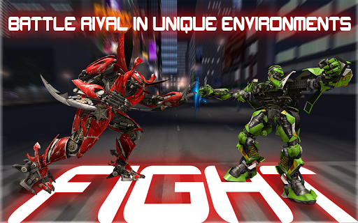 This conspicuous game with an added touch of ninja style fighting and kick fighting will make you an instant fan. Everything in the game is balanced and the game play has been tested thoroughly on various devices multiple times to insure the quality of your time. It is time now to fall in love with the most fun. Game play is simple. You pick a robot and see its transformation as a sports car. Drive to various places in the city and unleash hell on corrupted bots devoted to destroy the city. Protect your city and become the savior of humanity. Play the robot battle and enjoy the three modes of fighting. This is a new generous of robot battle games with the patch up of robot fighting games with ring fighting games and robot boxing games with new Combat Style. It’s a war of rings where one on one fight, combat robots try to kill you. Be careful in robots wars while fighting in ring. All are iron made, give them an iron kill in this robot hero game.
