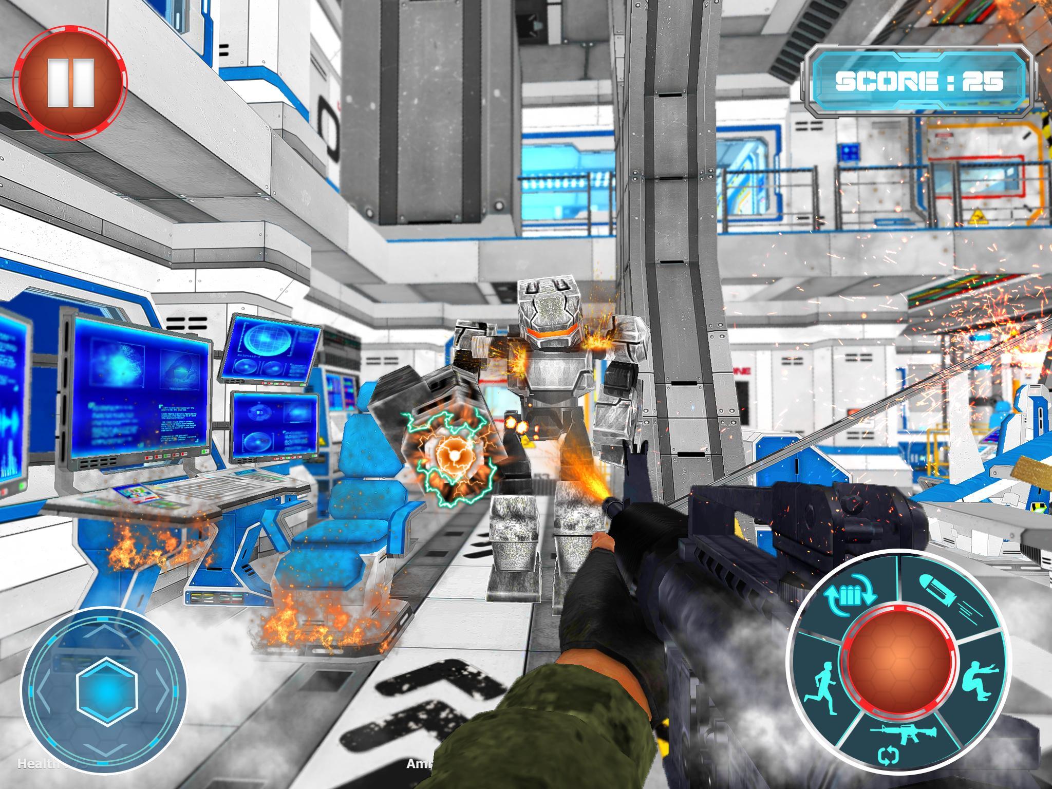Robots made of real iron and steel are clashing into robots war invading space in this ultimate robots war. Robots have invaded the planet from the outer space, it ignites the inter galactic robot war in space, the humans have to defend their space ship and have to defeat these war robots in this clash mission. These war androids robots are trained to kill and conquer; now it’s the mega combat between the humans and the deadly war robots.