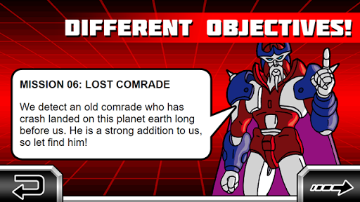 Play the event before the Great Robot War started on planet earth. Take control of a good robot commander who has fought countless battles against evil robots in his home planet. He and his fellow comrades where abandoning their home planet, but they were pursuit by their enemies. Together they were stranded on earth and from there their battle continues... Move like a robot, battle like a robot, BE THE ROBOT!