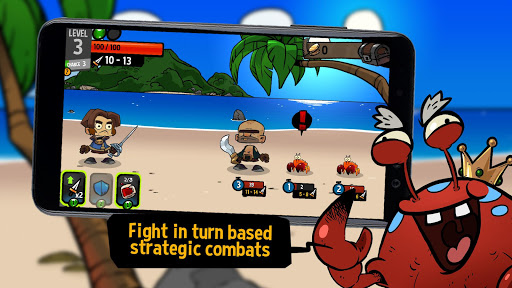 - Fight against pirates, crabs, mermaids, wizards and lots of foes in turn based strategic battles