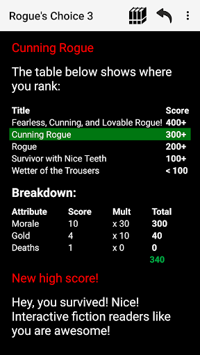 Note that Rogue's Choice content is also available in the Delight Games Library; however, this version has more options for advancing in the story for free (e.g. you can get coins by watching videos). And of course it's a smaller download and has a simpler UI. :)