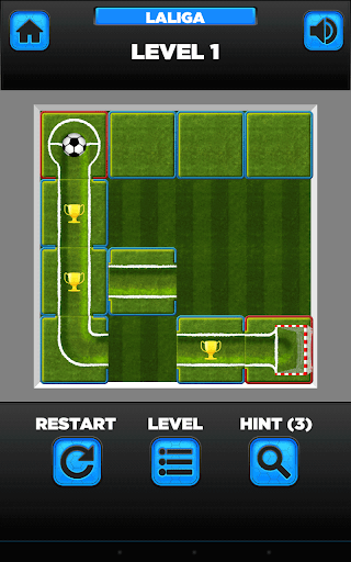 You are a football player and you have to score a goal in the soccer field. Slide the soccer field blocks with your finger and find the path for the football ball to reach the goal. Once the path is created, the soccer ball will start rolling.