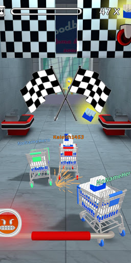 Race with other shopping carts, pick up as much goods as you can before shelves are all empty .