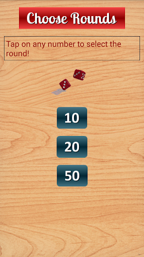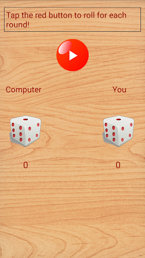 A simple game to try your luck by playing against the computer. Tap on any number to select the round from the home screen. In the next screen, tap the red button to roll for each round.