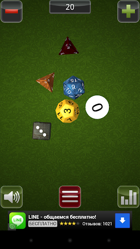 - Separate selection of color, texture of the dice and the background of the table!
