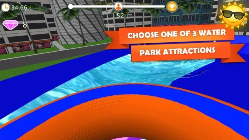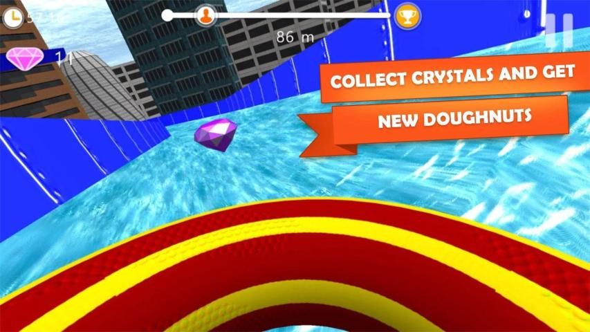 Rush down the slides as fast as possible, set the best time and become a new champion of the amusement park! Collect diamonds to unlock new donuts in Roller Coaster 3D — Water Park simulator!