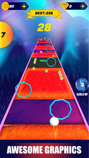 5) Each tile contain mix colors circle that needs to be hit. Missing the color circle on the road will lead to failure. So enjoy hitting!